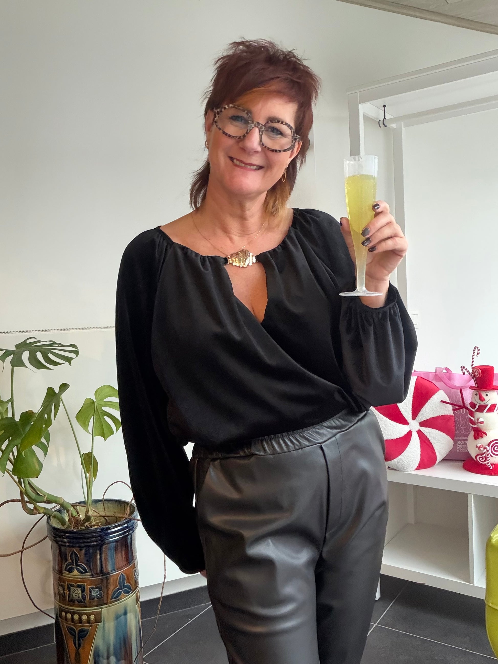 De soepelvallende pasvorm (one size!) voelt heerlijk zacht aan en sluit mooi aan voor elk figuur. Combineer hem feestelijk met een leatherlook broek of draag hem casual met jeans – altijd classy, altijd effortless.